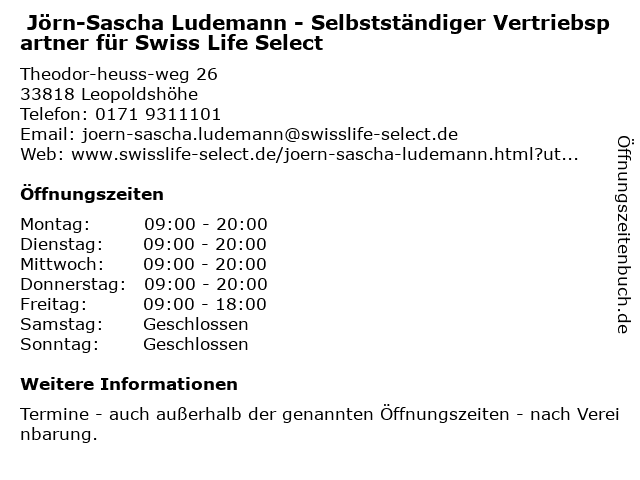 Branchen & Suchbegriffe zu Jörn-Sascha Ludemann - Selbstständiger Vertriebspartner für Swiss Life Select:berufshaftpflichtversicherung, berufsunfähigkeitsversicherung, finanzplanung, gebäude- und hausratsversicherung, investmentservice, jörn, lebensversicherung, life, ludemann, mietrechtsschutzversicherung, pflegeversicherung, sascha, selbstständiger, select, swiss, versicherungsberater, vertriebspartner |