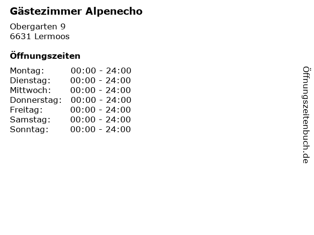 | Öffnungszeiten Gästezimmer Alpenecho in Lermoos anzeigen | |