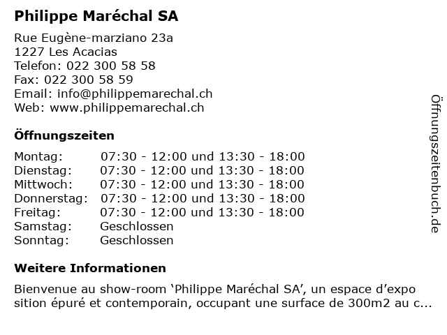 | Öffnungszeiten Philippe Maréchal SA in Les Acacias anzeigen | |