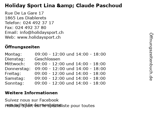 Branchen & Suchbegriffe zu Holiday Sport Lina & Claude Paschoud:ausrüstungsverleih, claude, holiday, lina, paschoud, sport |