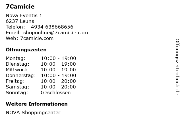 | Öffnungszeiten 7Camicie in Leuna anzeigen | |