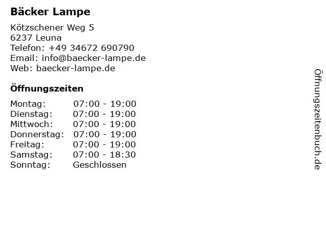 | Öffnungszeiten Bäcker Lampe in Leuna anzeigen | |