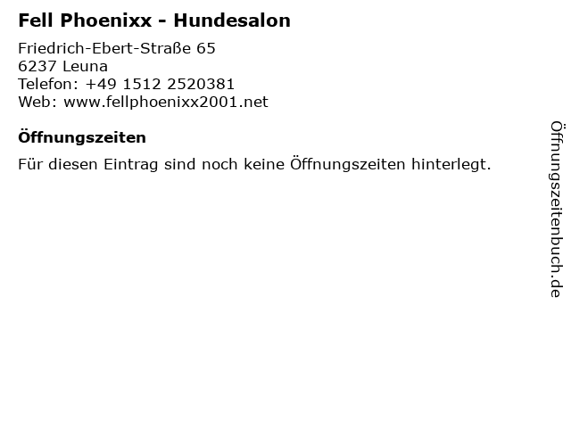 | Öffnungszeiten Fell Phoenixx - Hundesalon in Leuna anzeigen | |