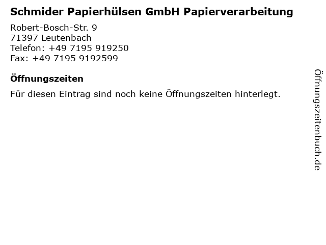 | Schmider Papierhülsen GmbH Papierverarbeitung anrufen | |