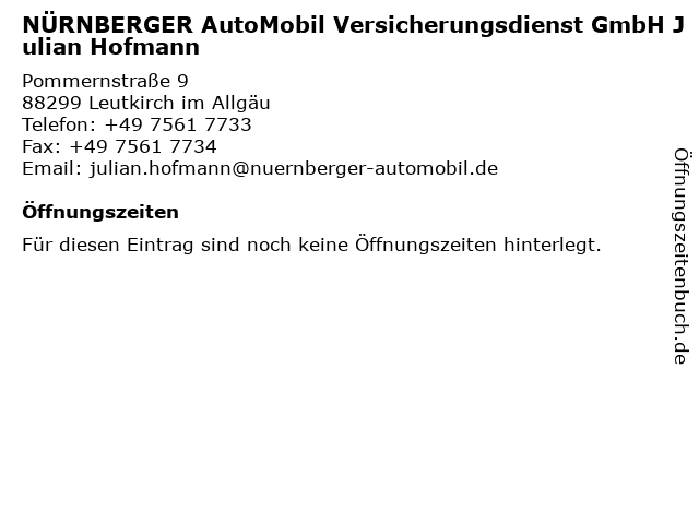 | NÜRNBERGER AutoMobil Versicherungsdienst GmbH Julian Hofmann anrufen | |
