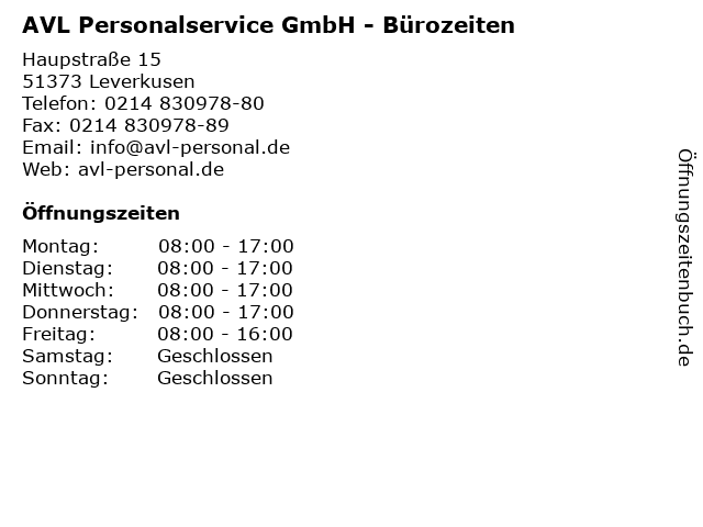 Branchen & Suchbegriffe zu AVL Personalservice GmbH - Bürozeiten:avl, bürozeiten, hr, personal, personaldienstleistungen, personalservice |