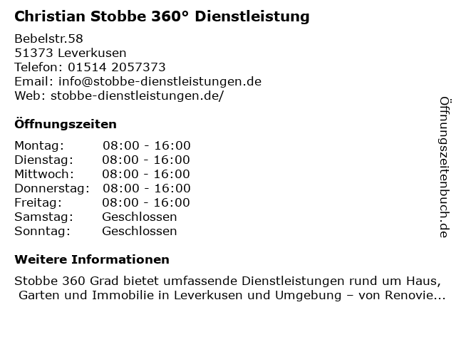 Branchen & Suchbegriffe zu Christian Stobbe 360° Dienstleistung:360°, christian, dienstleistung, stobbe |