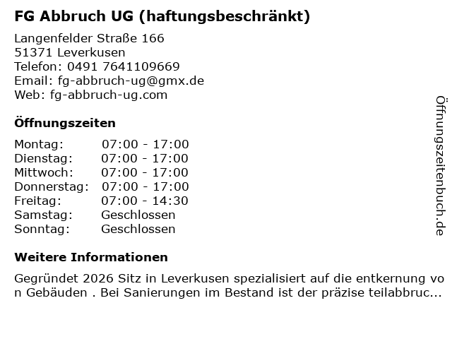 Branchen & Suchbegriffe zu FG Abbruch UG (haftungsbeschränkt):abbruch, fg, haftungsbeschränkt, ug |