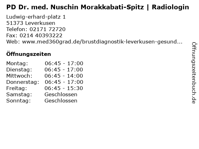 3 Dr. med. Andrea Dorothee Böhmert | Radiologin (Entfernung: 0,01 km) Ludwig-erhard-platz 1, 51373 Leverkusen 6 |