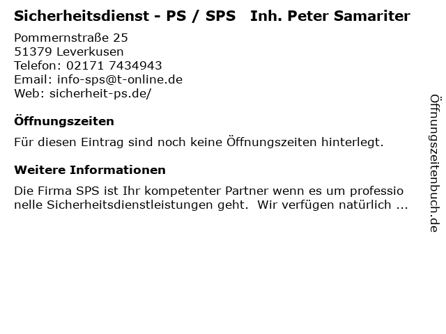 | Sicherheitsdienst - PS / SPS Inh. Peter Samariter anrufen | |