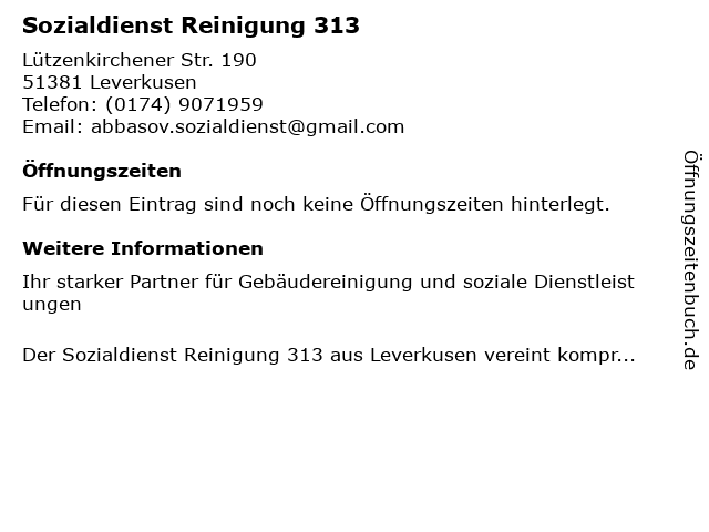 | Sozialdienst Reinigung 313 anrufen | |