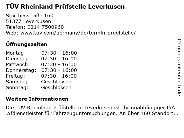 Branchen & Suchbegriffe zu TÜV Rheinland Prüfstelle Leverkusen:prüfstelle, rheinland, tüv |