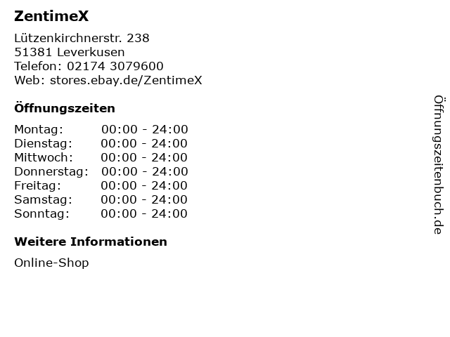 | Öffnungszeiten ZentimeX in Leverkusen anzeigen | |