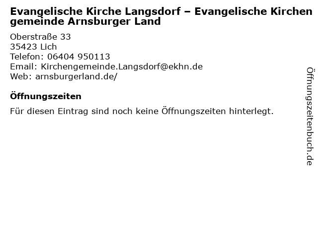 | Evangelische Kirche Langsdorf – Evangelische Kirchengemeinde Arnsburger Land anrufen | |