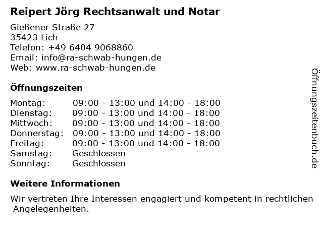 3 Schmandt Reiner Rechtsanwalt, Gerhard Freiling Rechtsanwalt und Notar (Entfernung: 7,85 km) Gießener Str. 22, 35415 Pohlheim 5 6 |