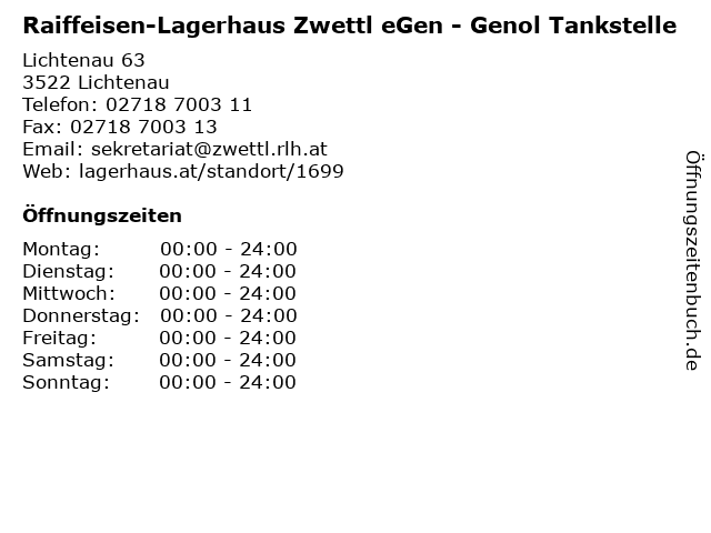 1 Raiffeisen-Lagerhaus Zwettl eGen - Genol Tankstelle (Entfernung: 6,87 km) Zwettlerstraße 16, 3542 Gföhl 2 Raiffeisen-Lagerhaus Zwettl eGen - Genol Tankstelle (Entfernung: 10,96 km) Schulstraße 20/1, 3623 Kottes 3 Raiffeisen-Lagerhaus Zwettl eGen - Genol Tankstelle (Entfernung: 16,04 km) Grafenschlag 89, 3912 Grafenschlag 4 Raiffeisen-Lagerhaus Zwettl eGen - Baumarkt Haus & Garten (Entfernung: 0,00 km) Lichtenau 63, 3522 Lichtenau im Waldviertel 5 Raiffeisen-Lagerhaus Zwettl eGen - Agrar, Baustoffe, Brennstoffe, Holzankauf (Entfernung: 0,00 km) Lichtenau 63, 3522 Lichtenau 6 Raiffeisenbank Region Waldviertel Mitte eGen mbH - (Bankomat Bankstelle) (Entfernung: 0,48 km) Lichtenau 8, 3522 Lichtenau |