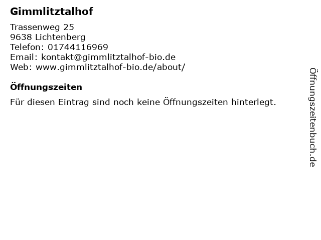 | Öffnungszeiten Gimmlitztalhof in Lichtenberg anzeigen | |