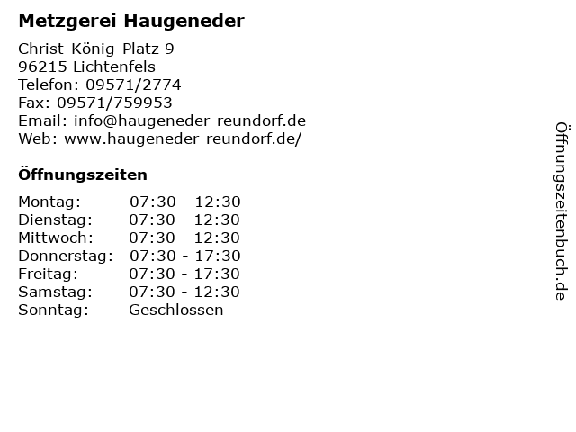 | Öffnungszeiten Metzgerei Haugeneder in Lichtenfels anzeigen | |