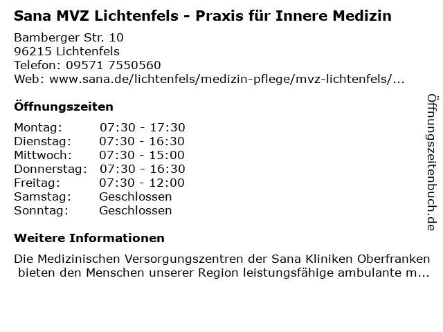 Branchen & Suchbegriffe zu Sana MVZ Lichtenfels - Praxis für Innere Medizin:innere, medizin, mvz, praxis, sana |