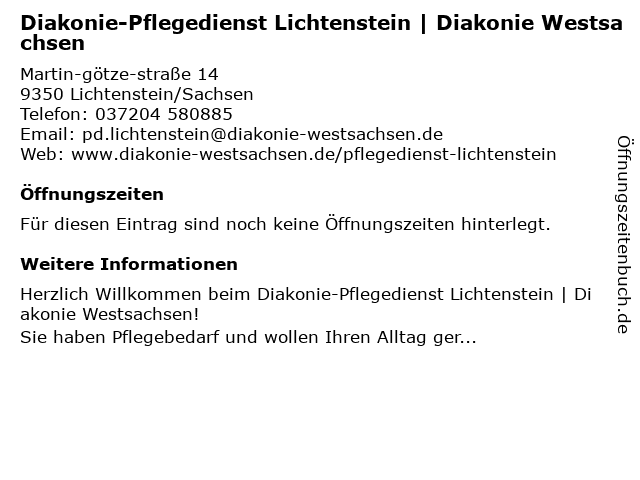 | Diakonie-Pflegedienst Lichtenstein | Diakonie Westsachsen anrufen | |