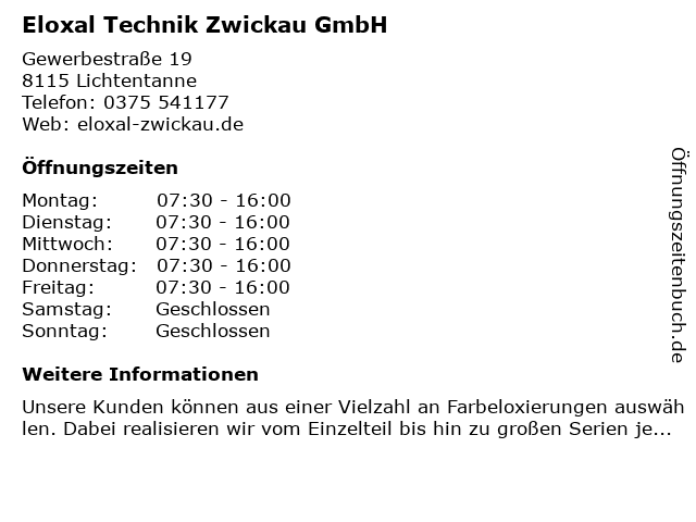 Branchen & Suchbegriffe zu Eloxal Technik Zwickau GmbH:eloxal, technik |