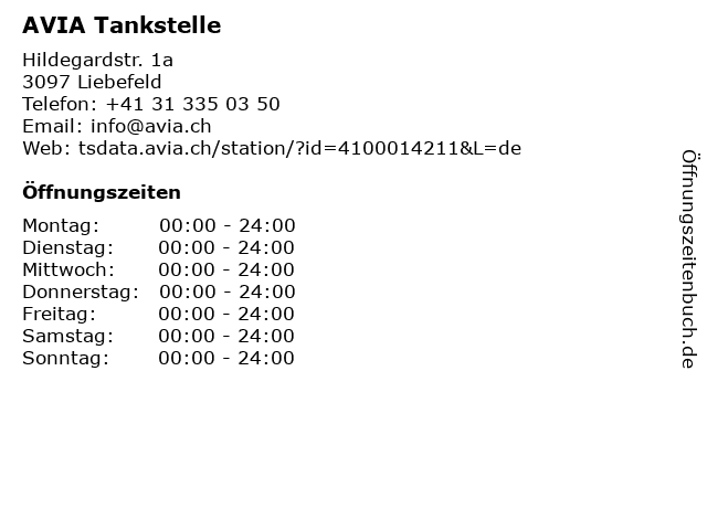| Öffnungszeiten AVIA Tankstelle in Liebefeld anzeigen | |