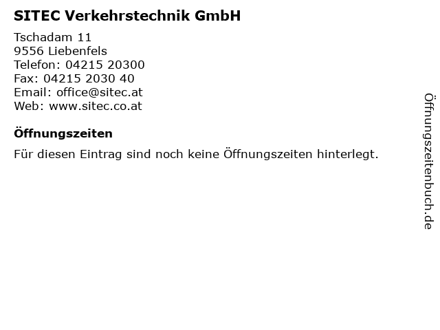 | Öffnungszeiten SITEC Verkehrstechnik GmbH in Liebenfels anzeigen | |