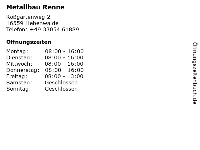| Öffnungszeiten Metallbau Renne in Liebenwalde anzeigen | |