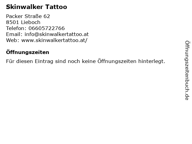 | Öffnungszeiten Skinwalker Tattoo in Lieboch anzeigen | |