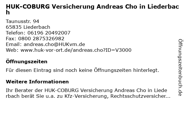 | HUK-COBURG Versicherung Andreas Cho in Liederbach anrufen | |