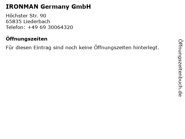 | Telefonnummer IRONMAN Germany GmbH in Liederbach (+49 69 30064320) anrufen | |
