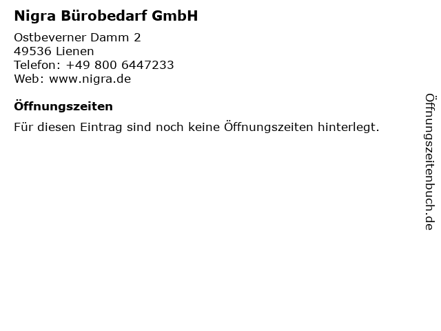 | Öffnungszeiten Nigra Bürobedarf GmbH in Lienen anzeigen | |