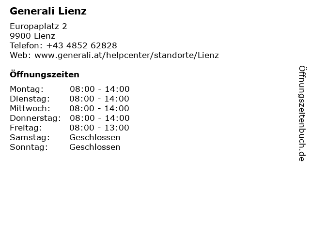 | Öffnungszeiten Generali Lienz in Lienz anzeigen | |