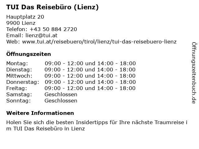 | Öffnungszeiten TUI Das Reisebüro (Lienz) in Lienz anzeigen | |