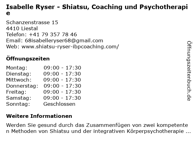 Branchen & Suchbegriffe zu Isabelle Ryser - Shiatsu, Coaching und Psychotherapie:coaching, isabelle, körpertherapie, meditation, psychologische beratung, psychotherapie, ryser, shiatsu, shiatsu-therapie & ibp-coaching |