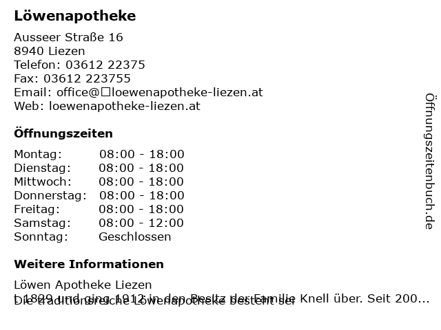 Öffnungszeiten Löwenapotheke