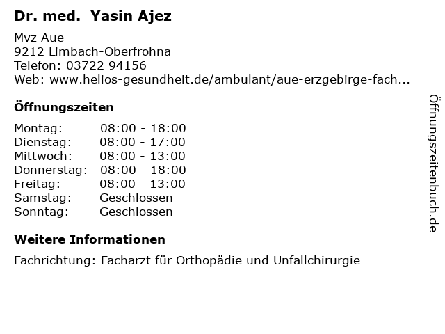 Branchen & Suchbegriffe zu Dr. med. Yasin Ajez:ajez, dr., med., yasin |