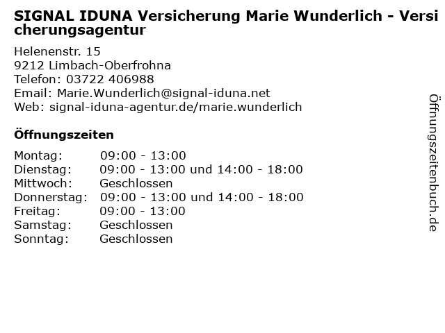 Branchen & Suchbegriffe zu SIGNAL IDUNA Versicherung Marie Wunderlich - Versicherungsagentur:iduna, marie, signal, versicherung, versicherungsagentur, wunderlich |