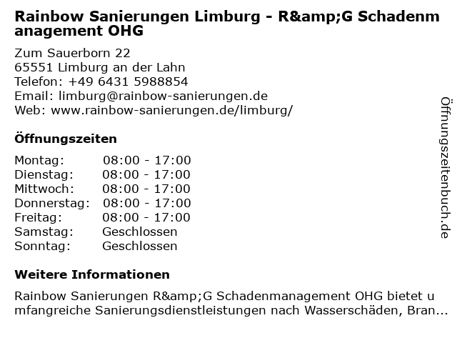 Branchen & Suchbegriffe zu Rainbow Sanierungen Limburg - R&G Schadenmanagement OHG:brandschaden, brandschadensanierung, feuchte wand, r&g, rainbow, sanierungen, schadenmanagement, schimmelsanierung, schimmelschaden, trocknung, wasserschaden, wasserschadensanierung |