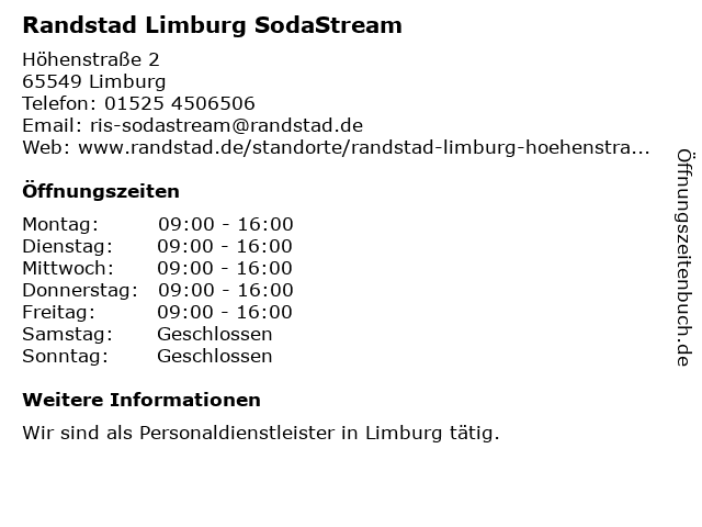 | Öffnungszeiten Randstad Limburg SodaStream in Limburg anzeigen | |