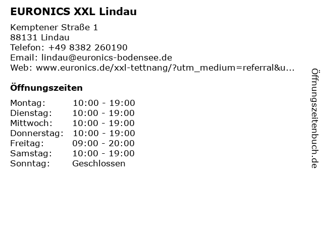| Öffnungszeiten EURONICS XXL Lindau in Lindau anzeigen | |