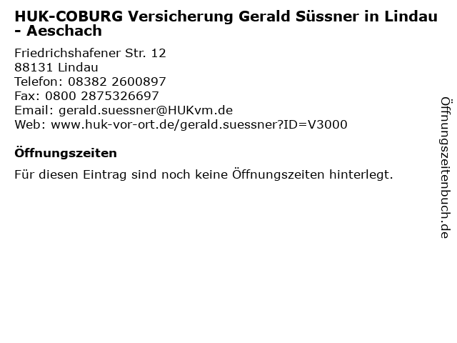 Öffnungszeiten HUK-COBURG Versicherung Gerald Süssner in Lindau - Aeschach