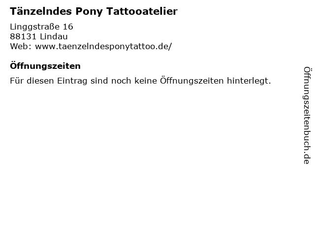 | Öffnungszeiten Tänzelndes Pony Tattooatelier in Lindau anzeigen | |
