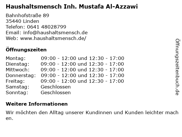 Branchen & Suchbegriffe zu Haushaltsmensch Inh. Mustafa Al-Azzawi:al, azzawi, haushaltsmensch, mustafa |