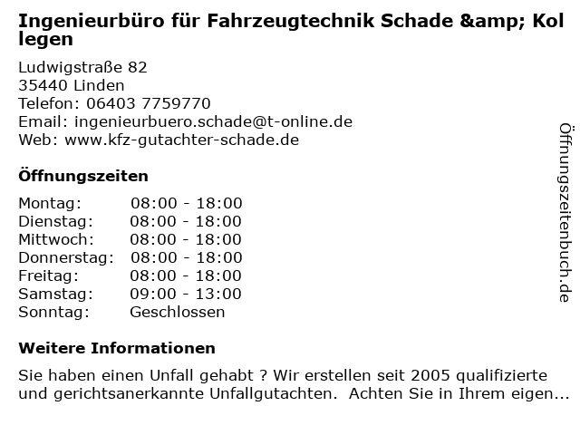 Branchen & Suchbegriffe zu Ingenieurbüro für Fahrzeugtechnik Schade & Kollegen:fahrzeugtechnik, ingenieurbüro, kollegen, sachverständige, schade |
