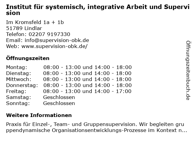 Branchen & Suchbegriffe zu Institut für systemisch, integrative Arbeit und Supervision:arbeit, institut, integrative, lebenscoaching, supervision, systemisch |