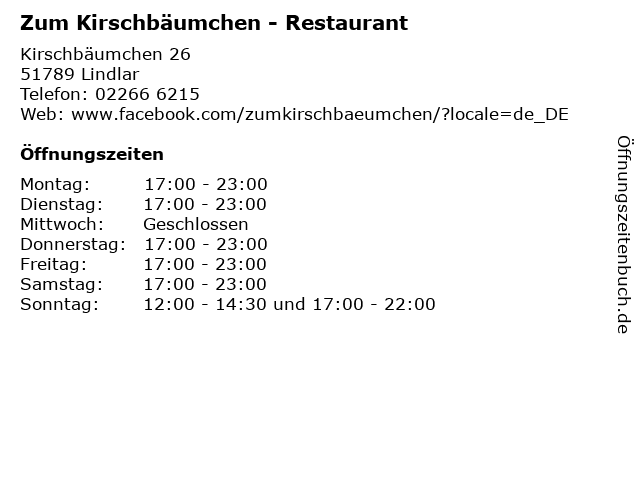 Zum Kirschbäumchen - Restaurant in Lindlar | Telefonnummer, Öffnungszeiten und Adresse