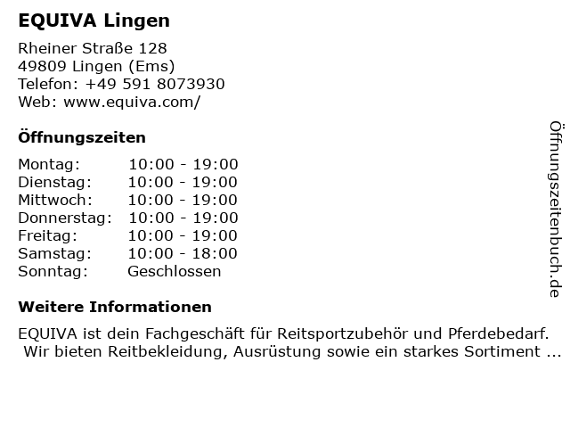 | Öffnungszeiten EQUIVA Lingen in Lingen (Ems) anzeigen | |