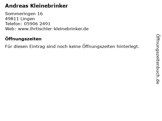 | Öffnungszeiten Andreas Kleinebrinker in Lingen anzeigen | |