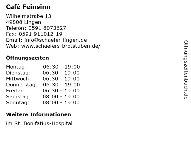 | Öffnungszeiten Café Feinsinn in Lingen anzeigen | |